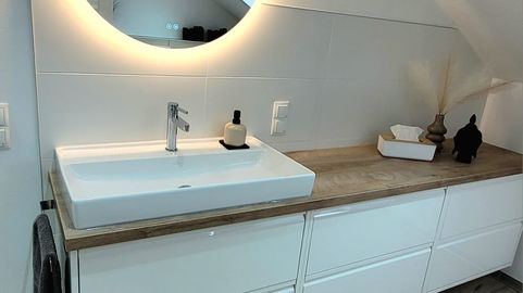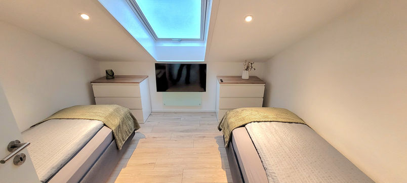 Die helle und moderne ca. 85 m² Dachgeschosswohnung befindet sich in der ersten Etage des Ferienhauses und ist für bis zu 4 Personen geeignet.
